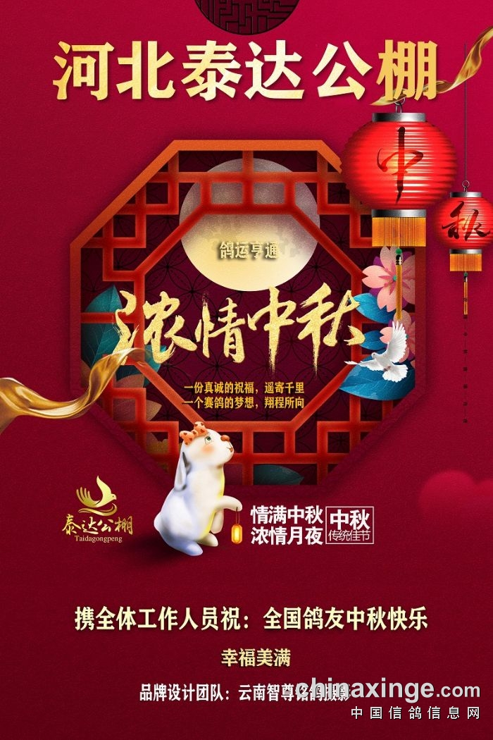泰达公棚全体员工祝全国鸽友中秋节快乐!