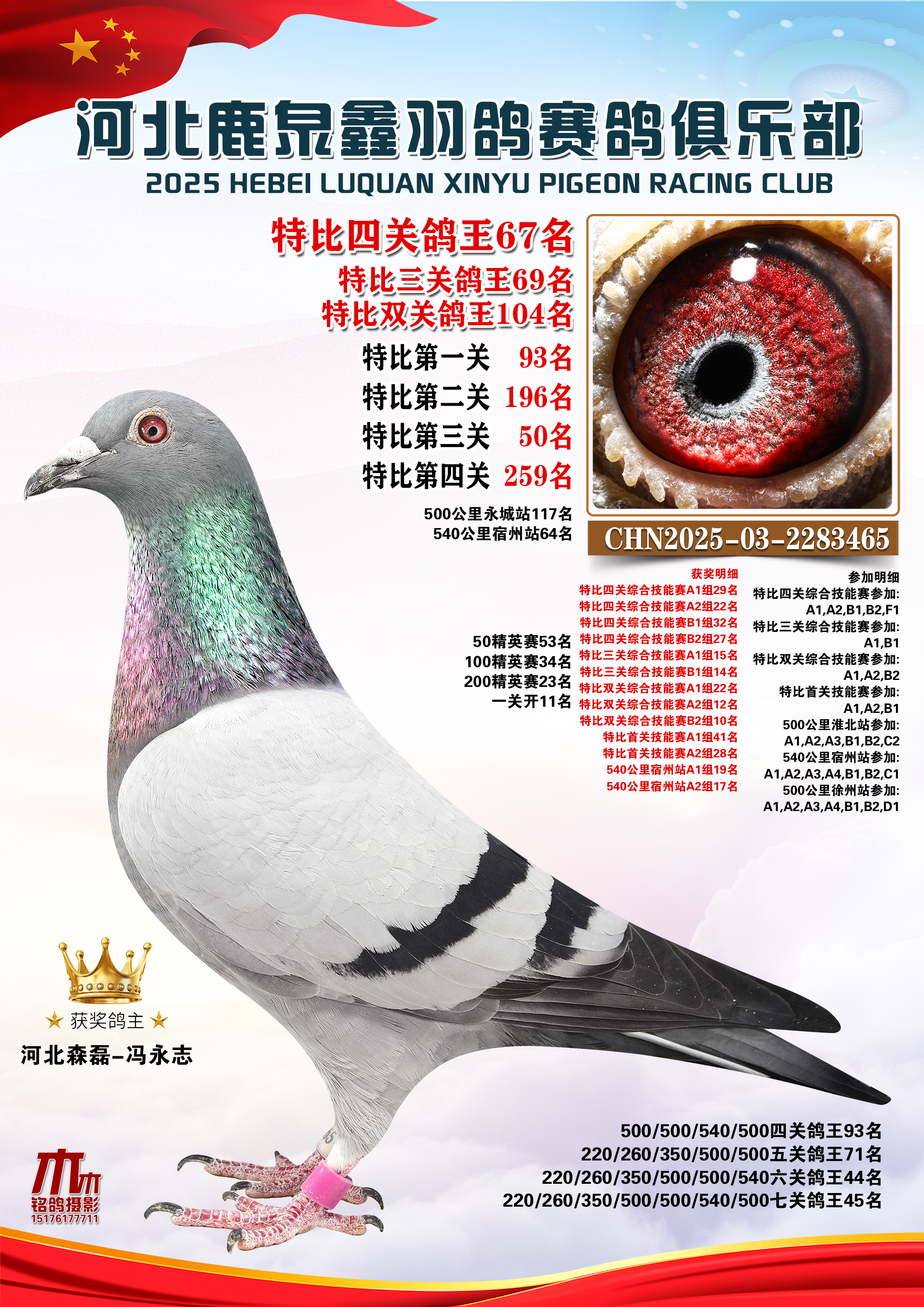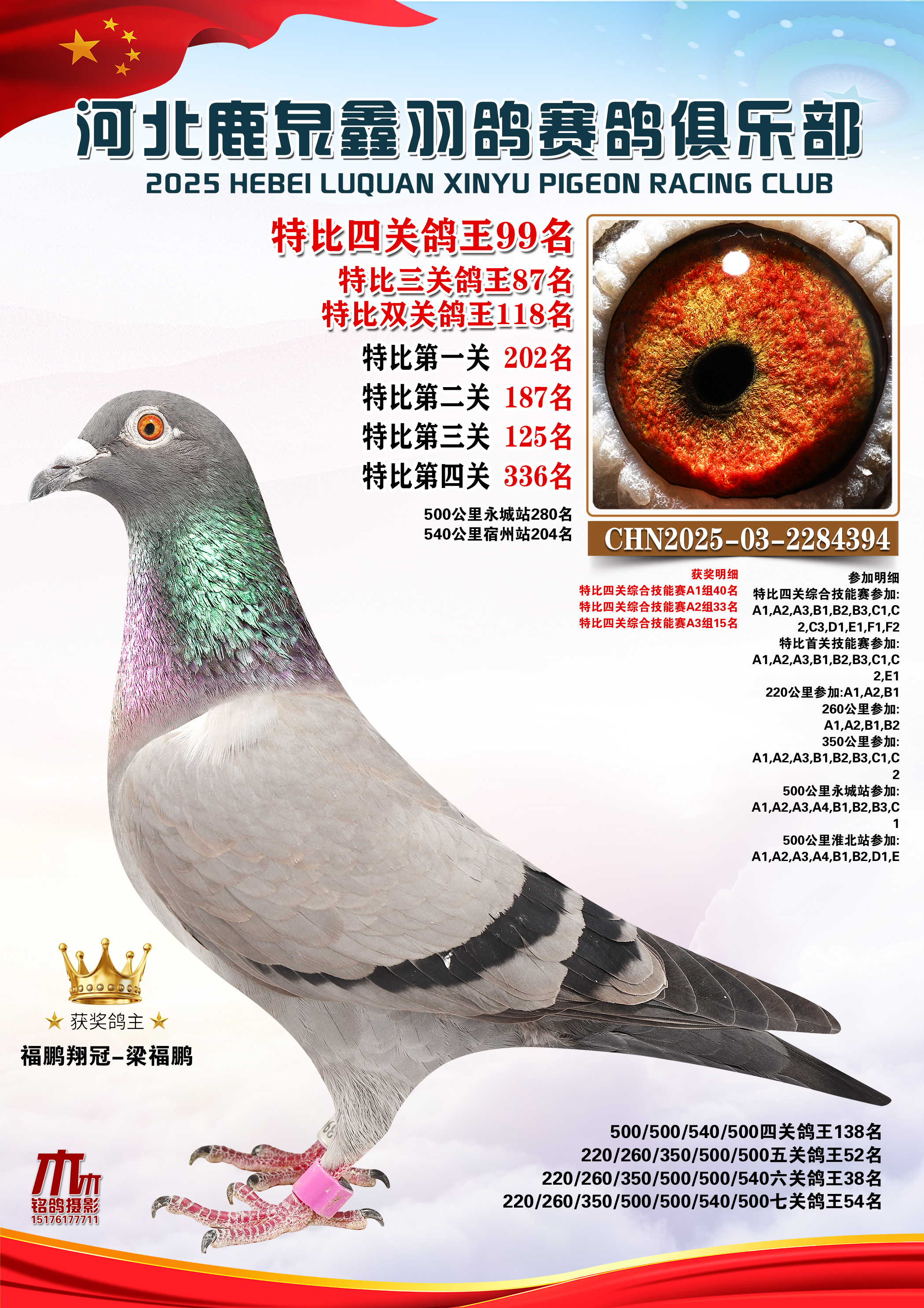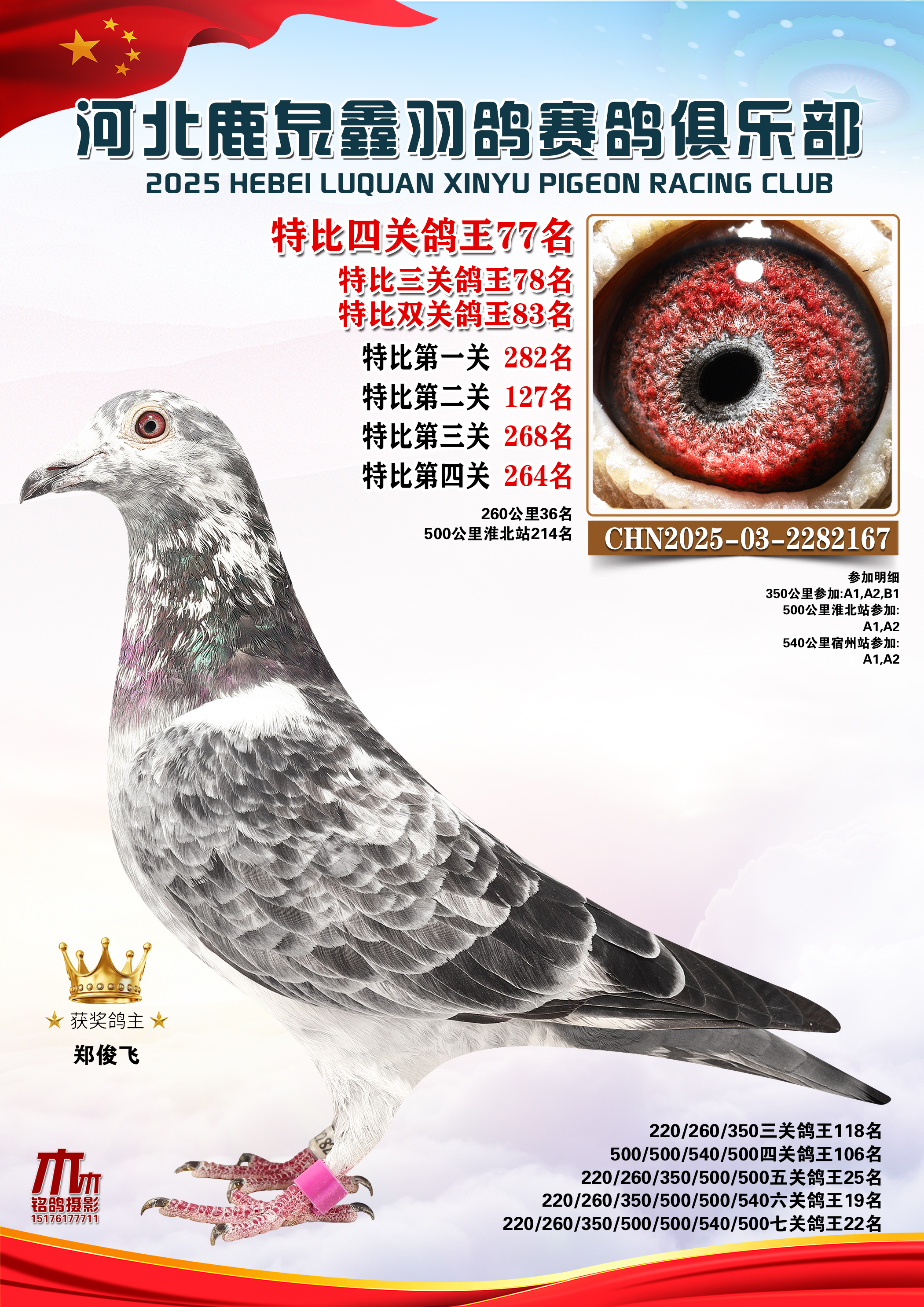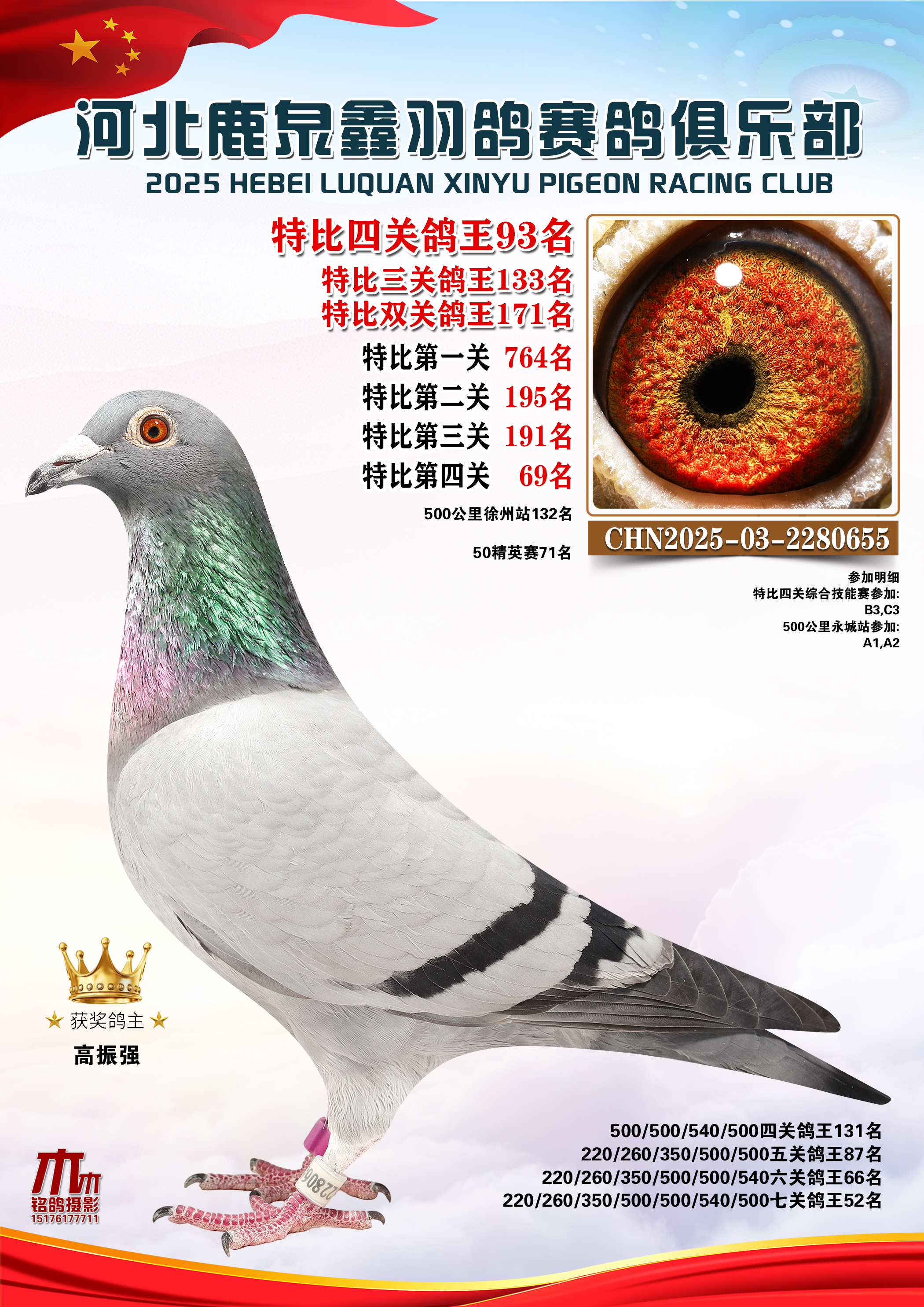 • 25秋河北鹿泉鑫羽鸽俱乐部特比鸽王201-250名 (2025/12/1 8:41:18)