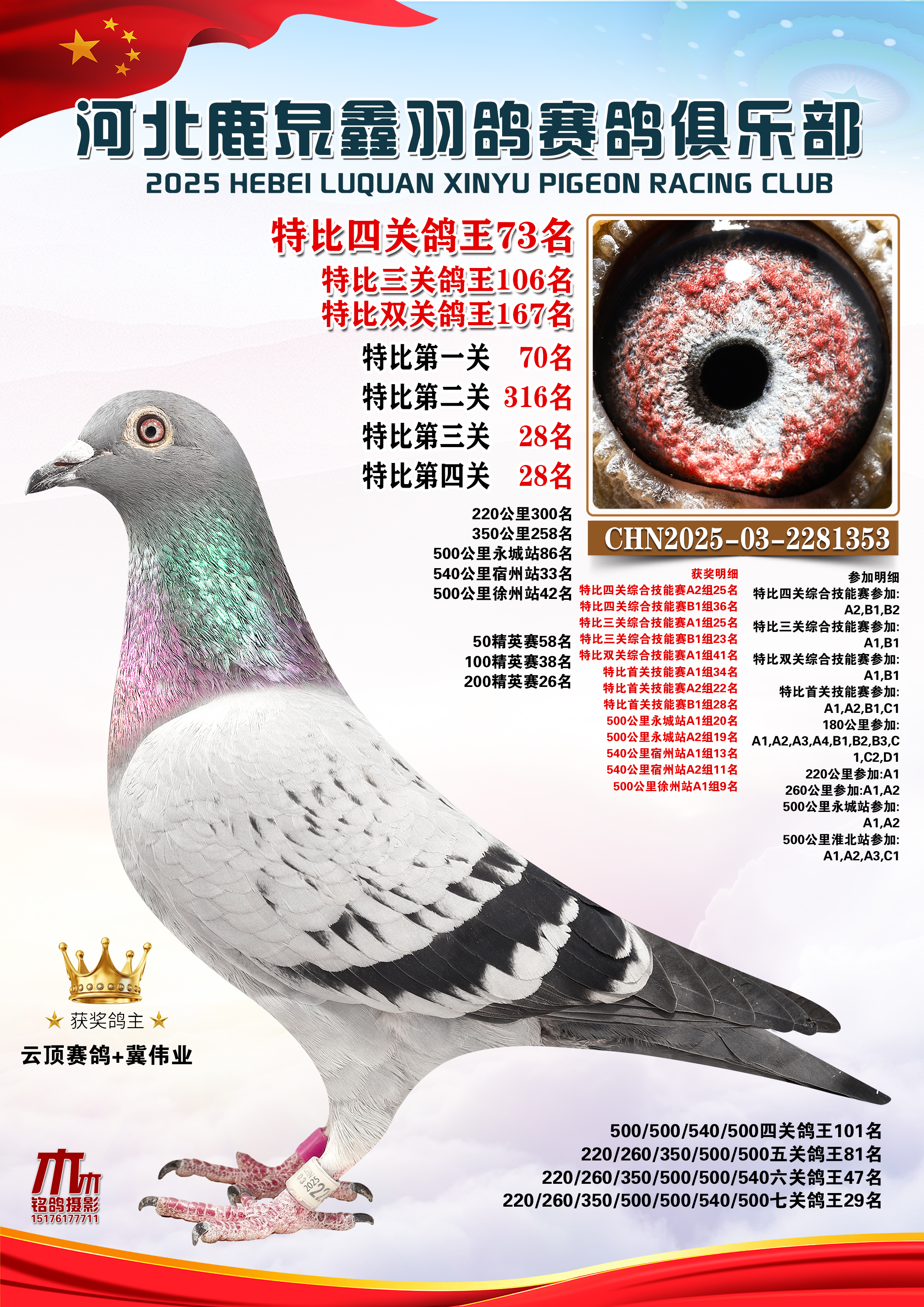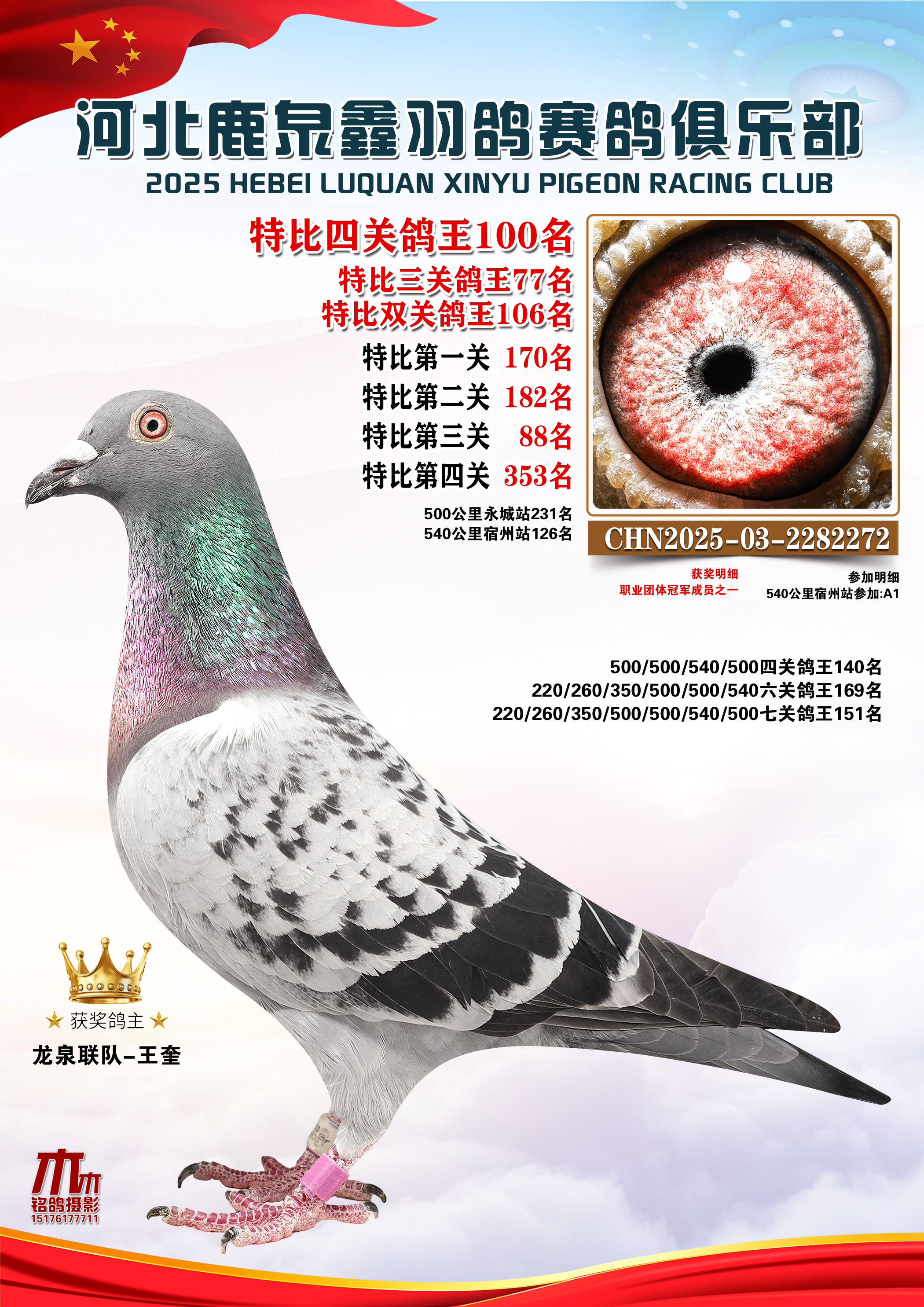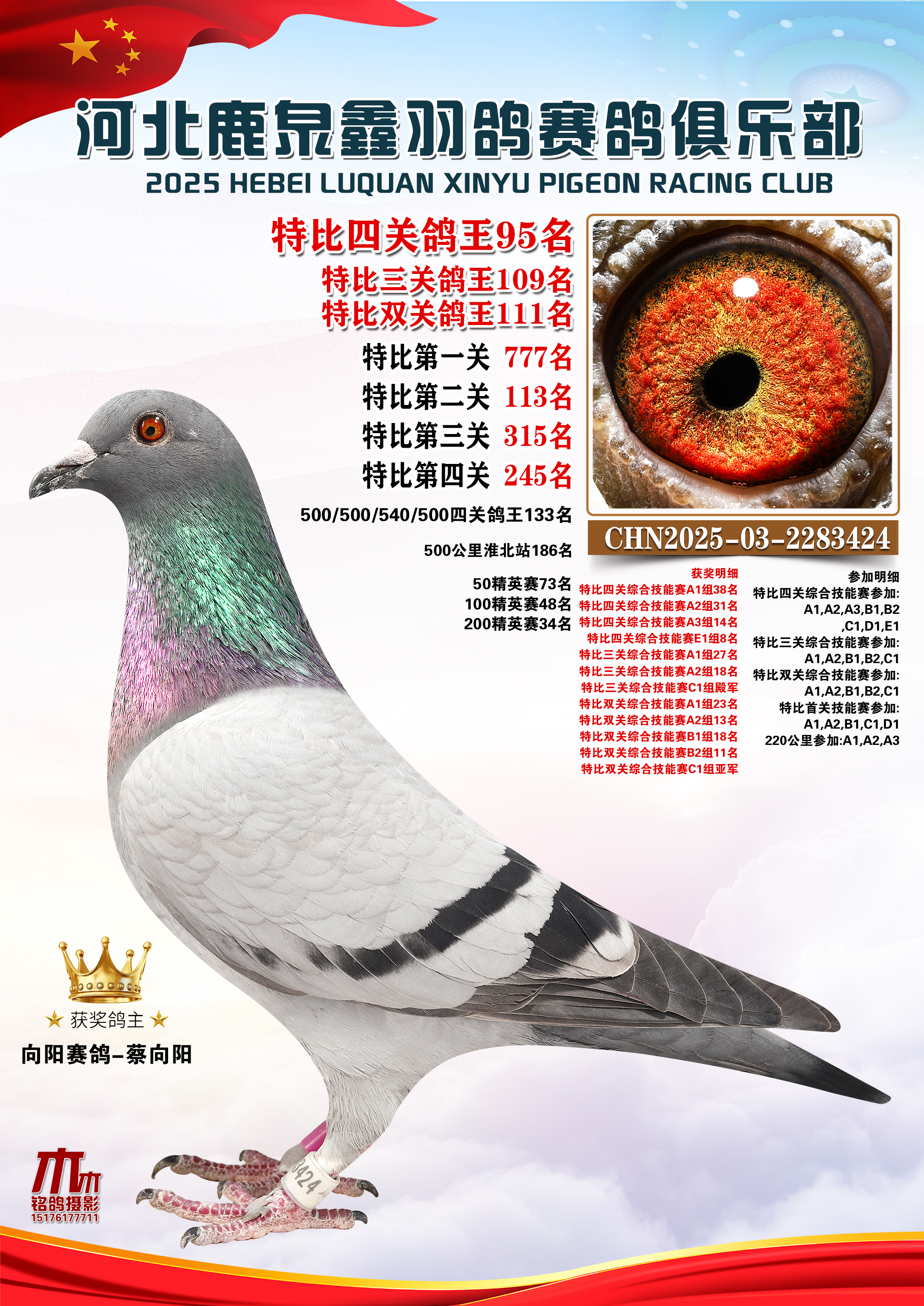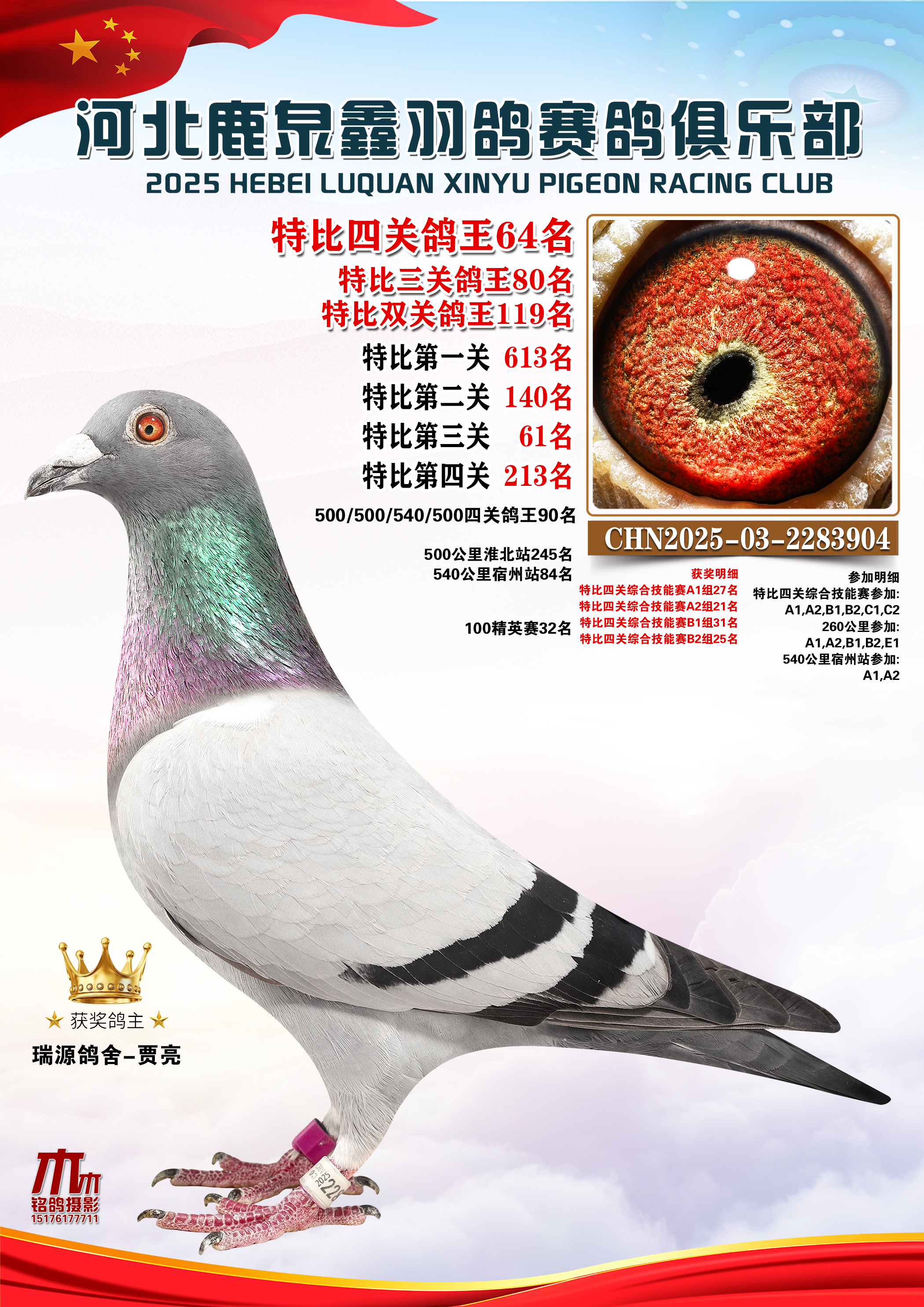 • 25秋河北鹿泉鑫羽鸽俱乐部特比鸽王201-250名 (2025/12/1 8:41:18)