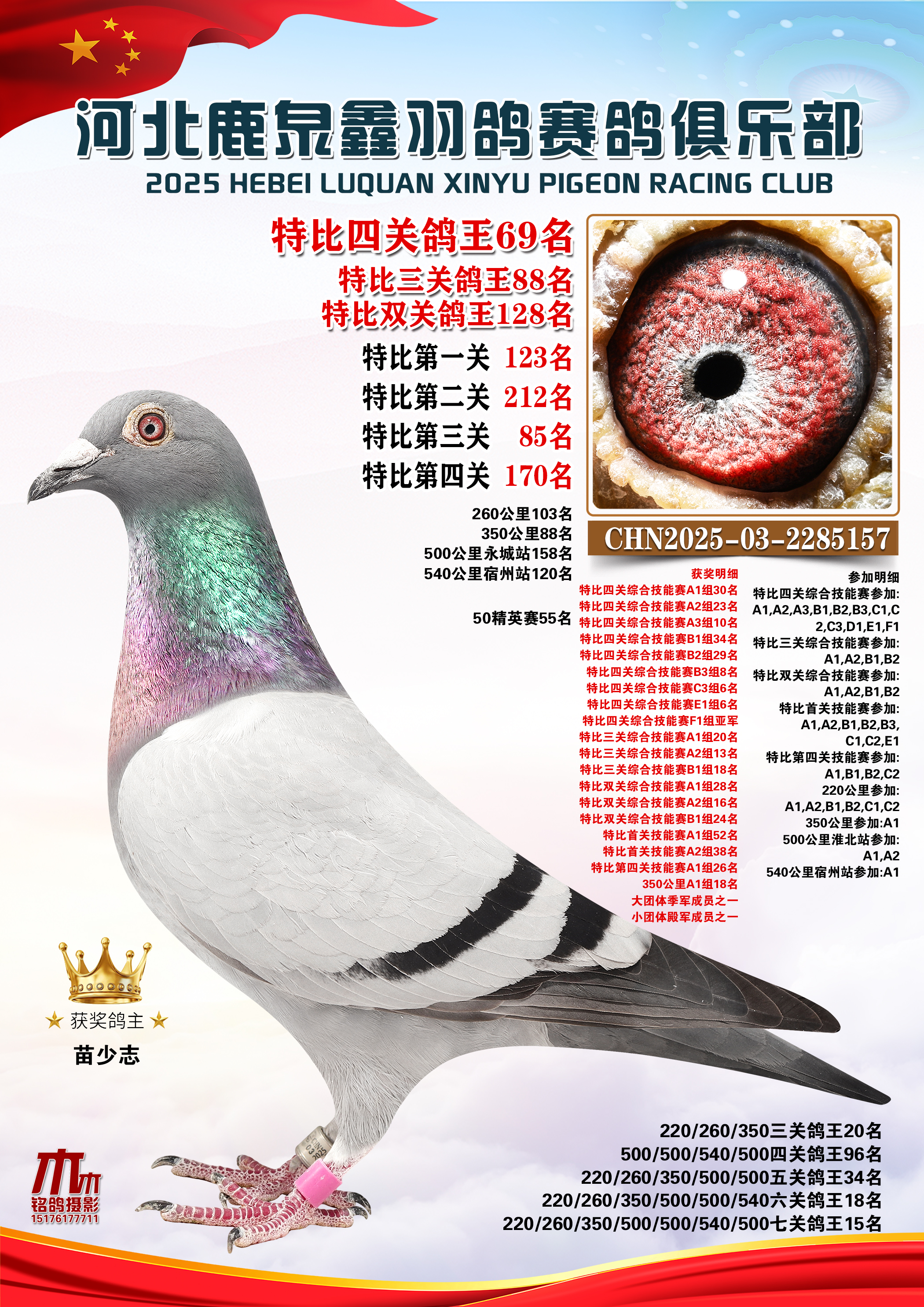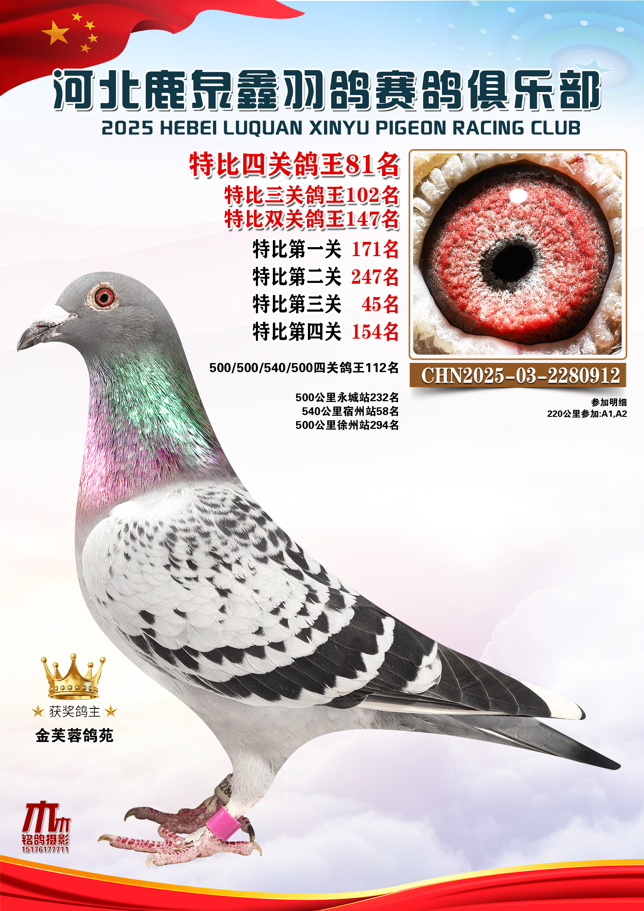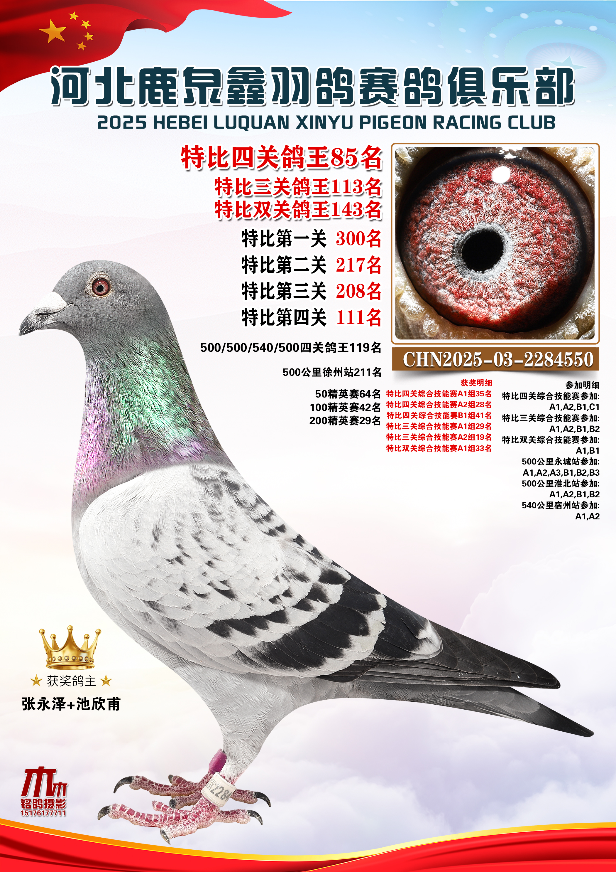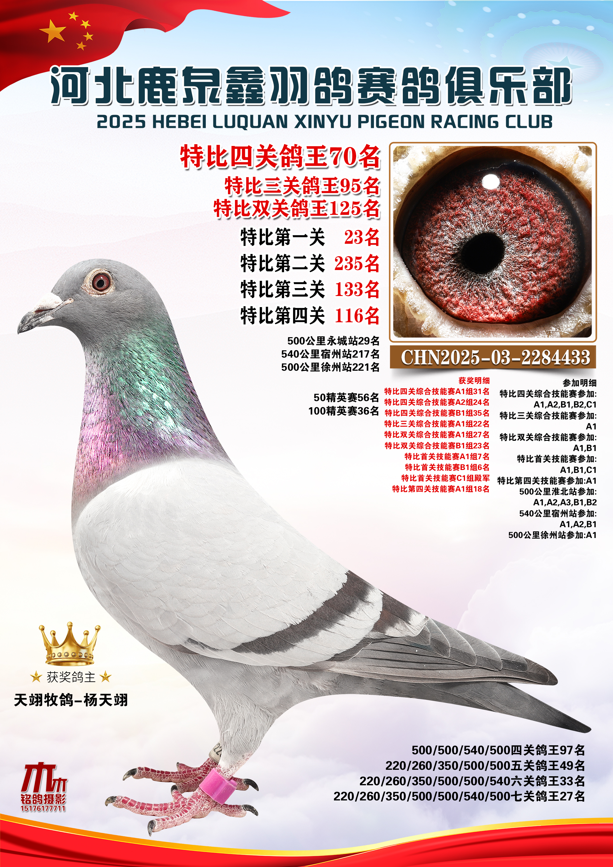 • 25秋河北鹿泉鑫羽鸽俱乐部特比鸽王201-250名 (2025/12/1 8:41:18)
