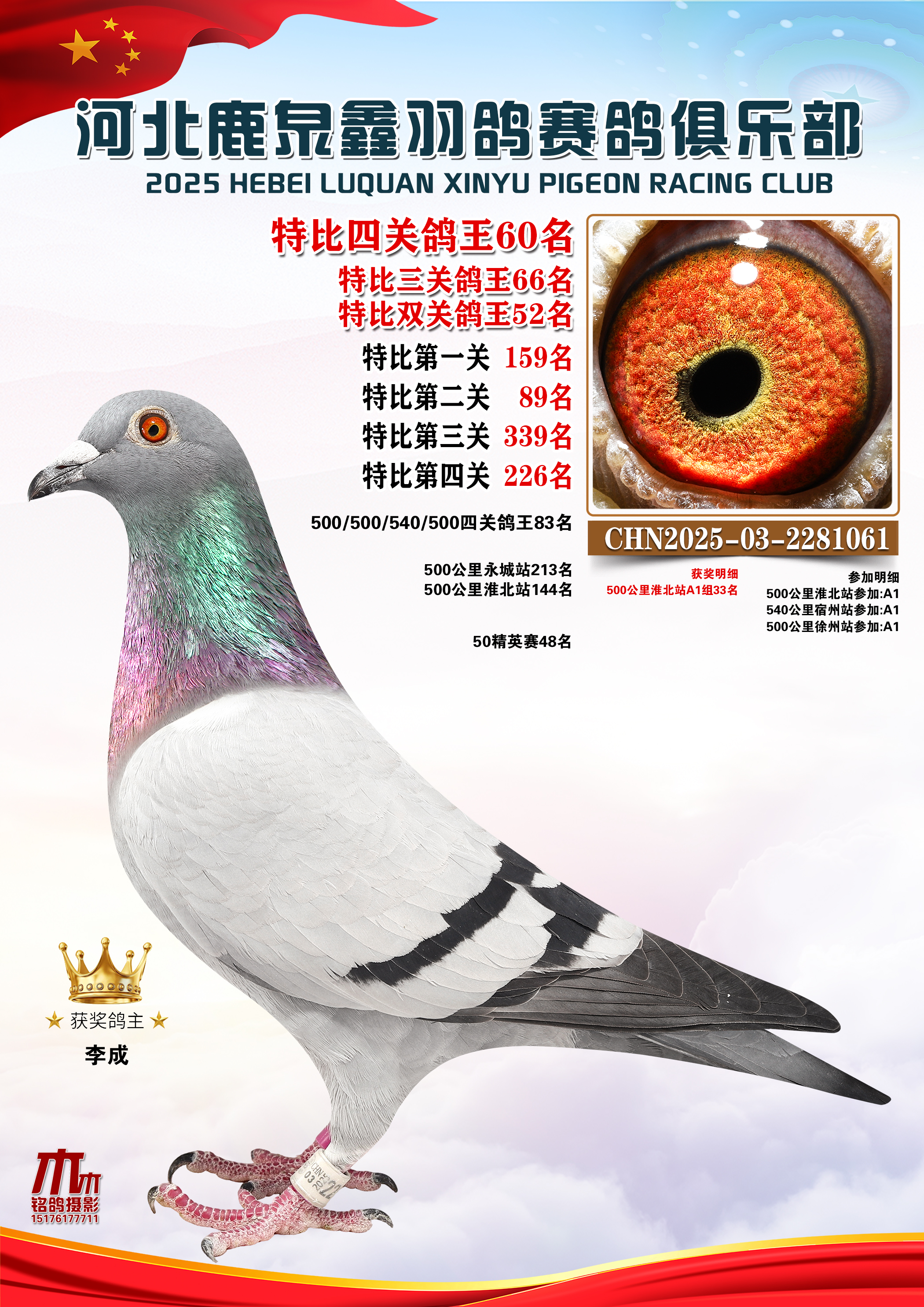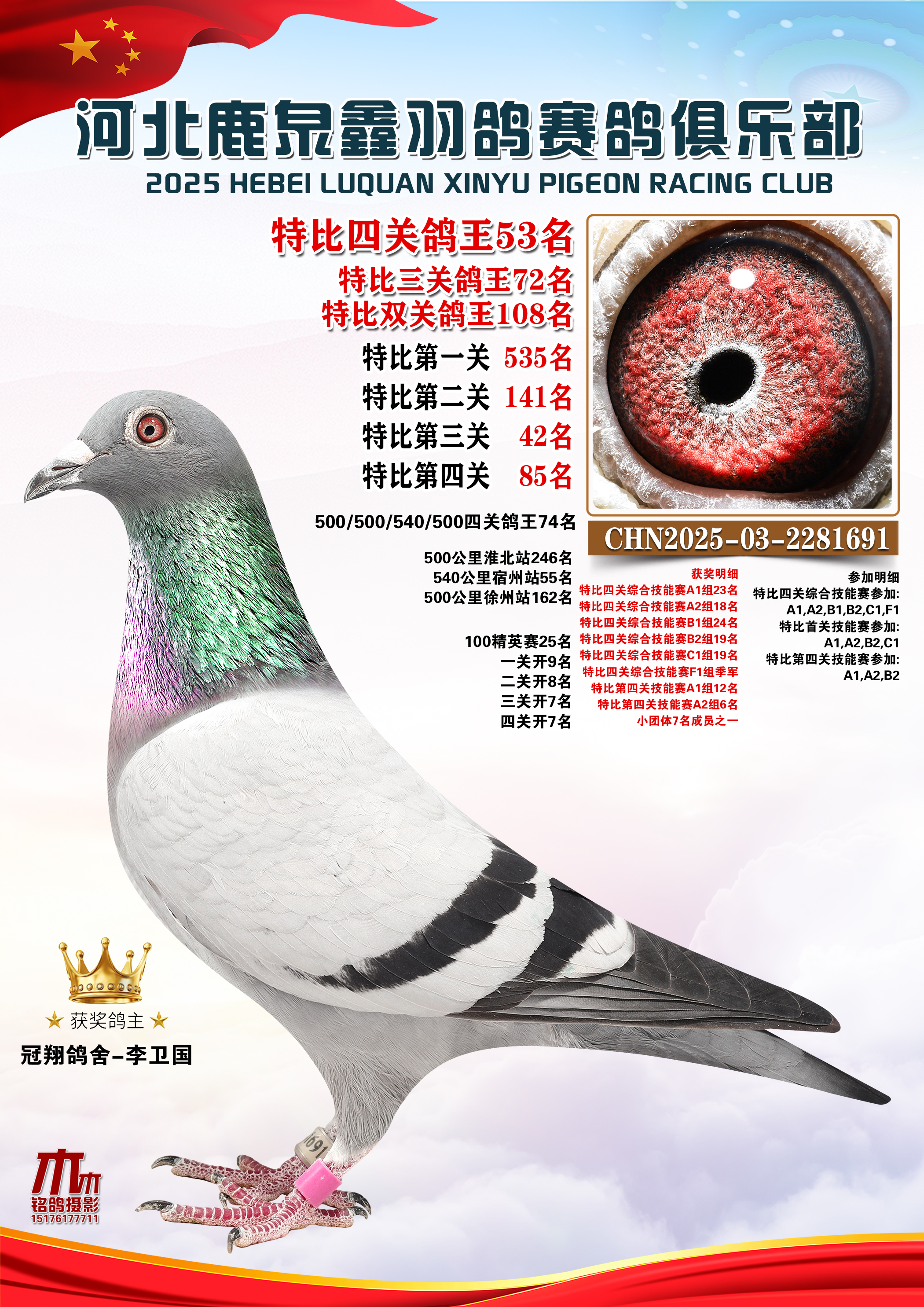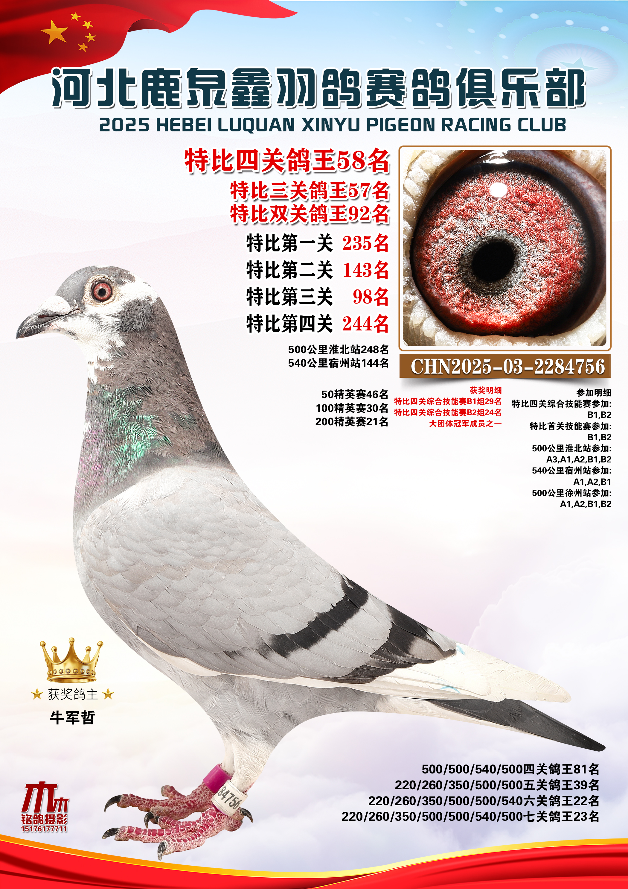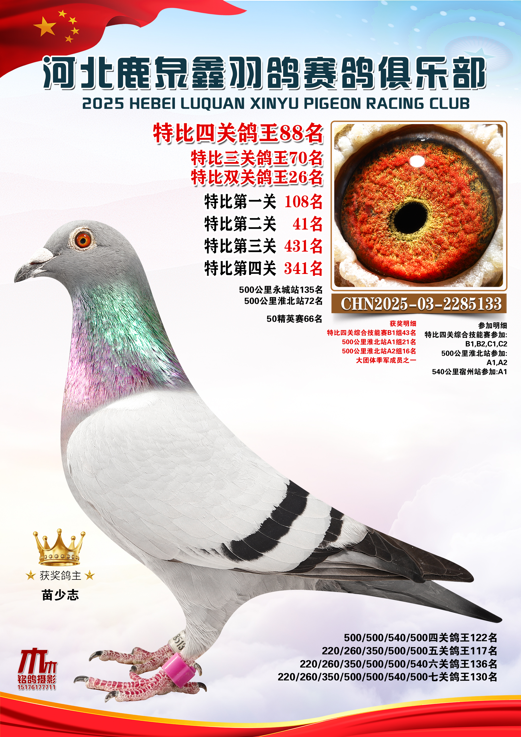 • 25秋河北鹿泉鑫羽鸽俱乐部特比鸽王201-250名 (2025/12/1 8:41:18)