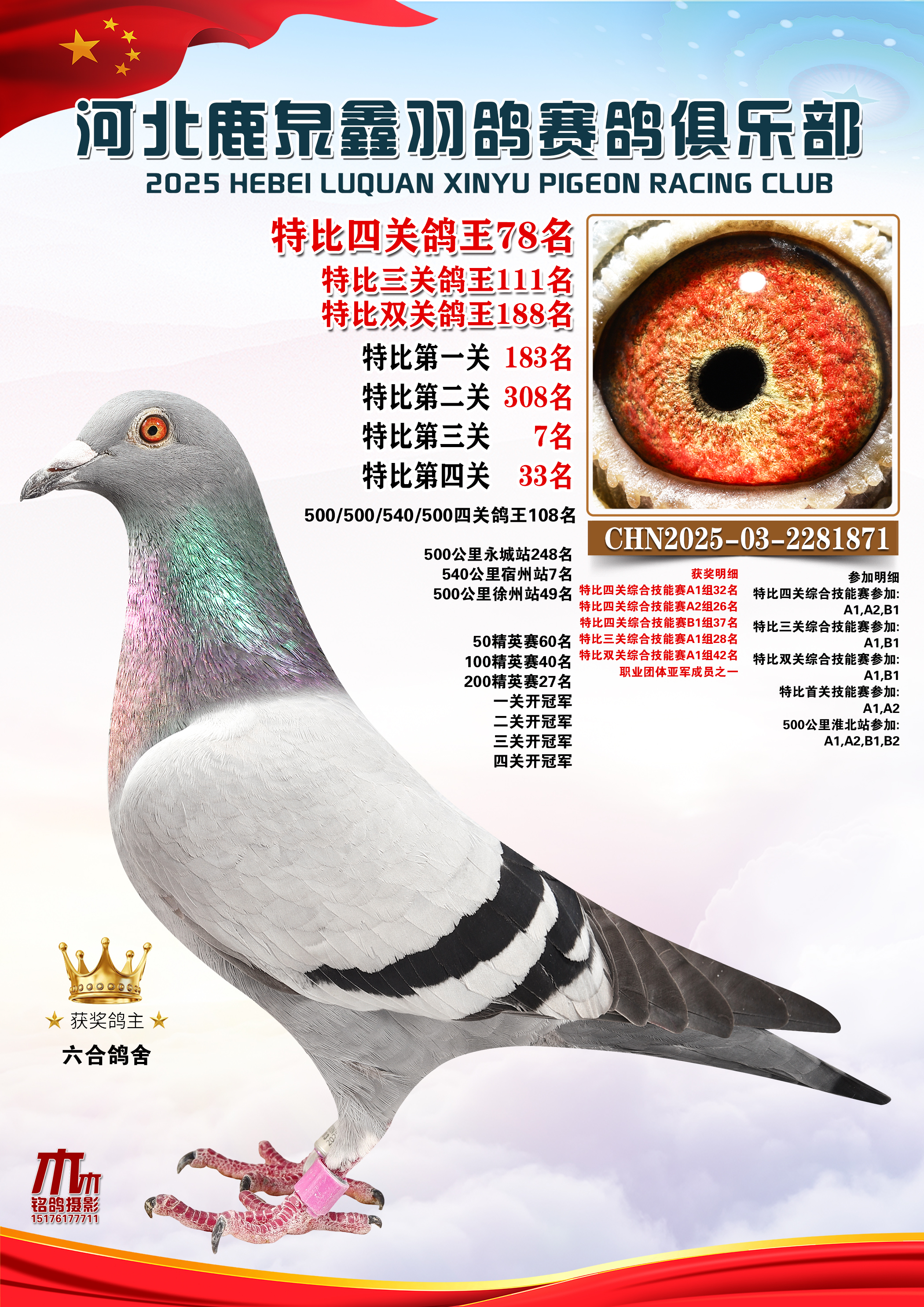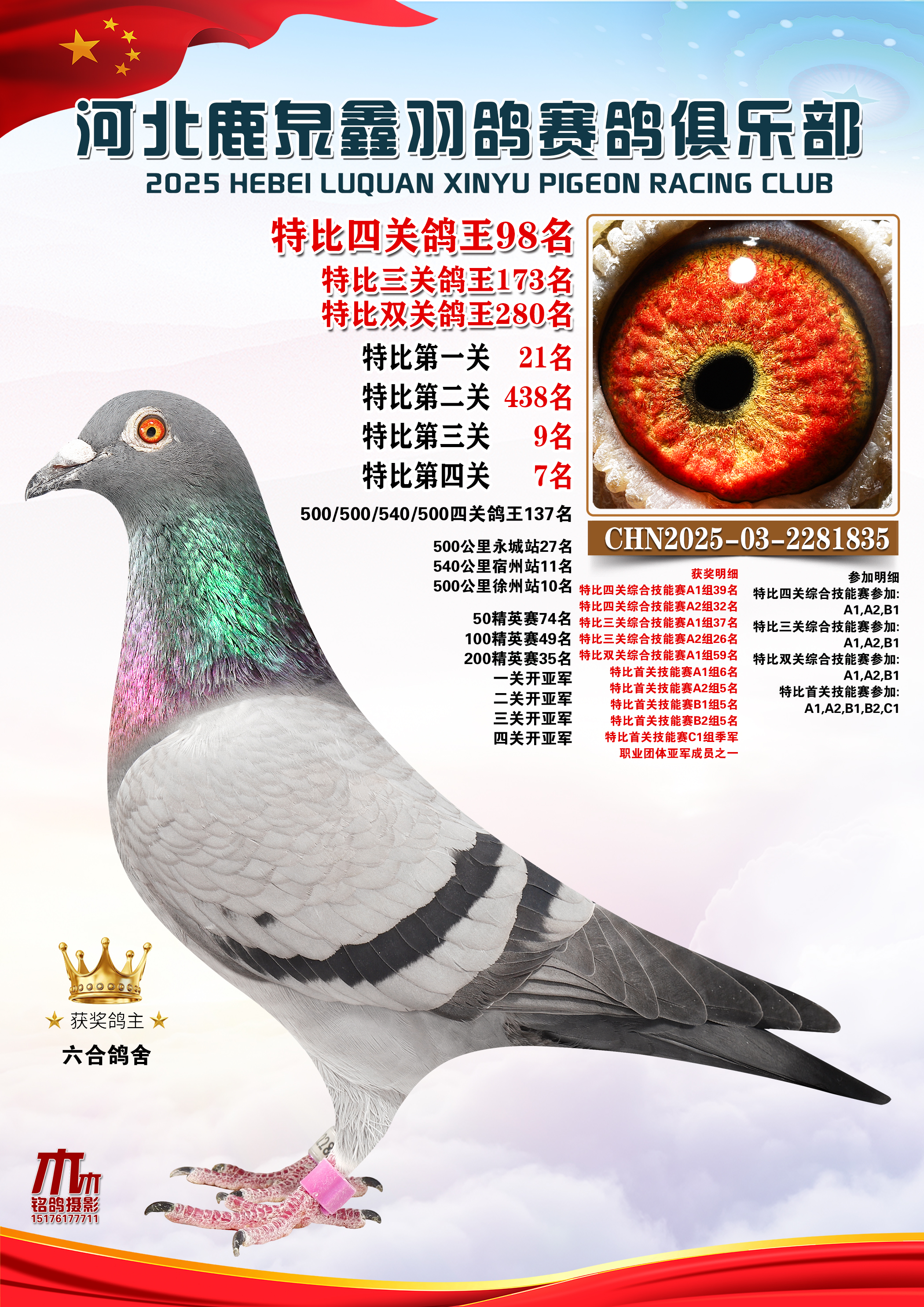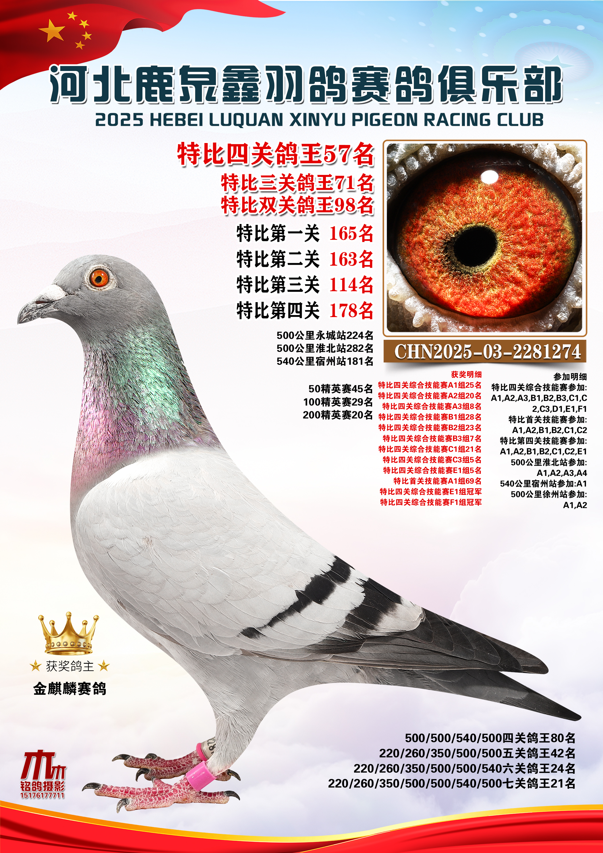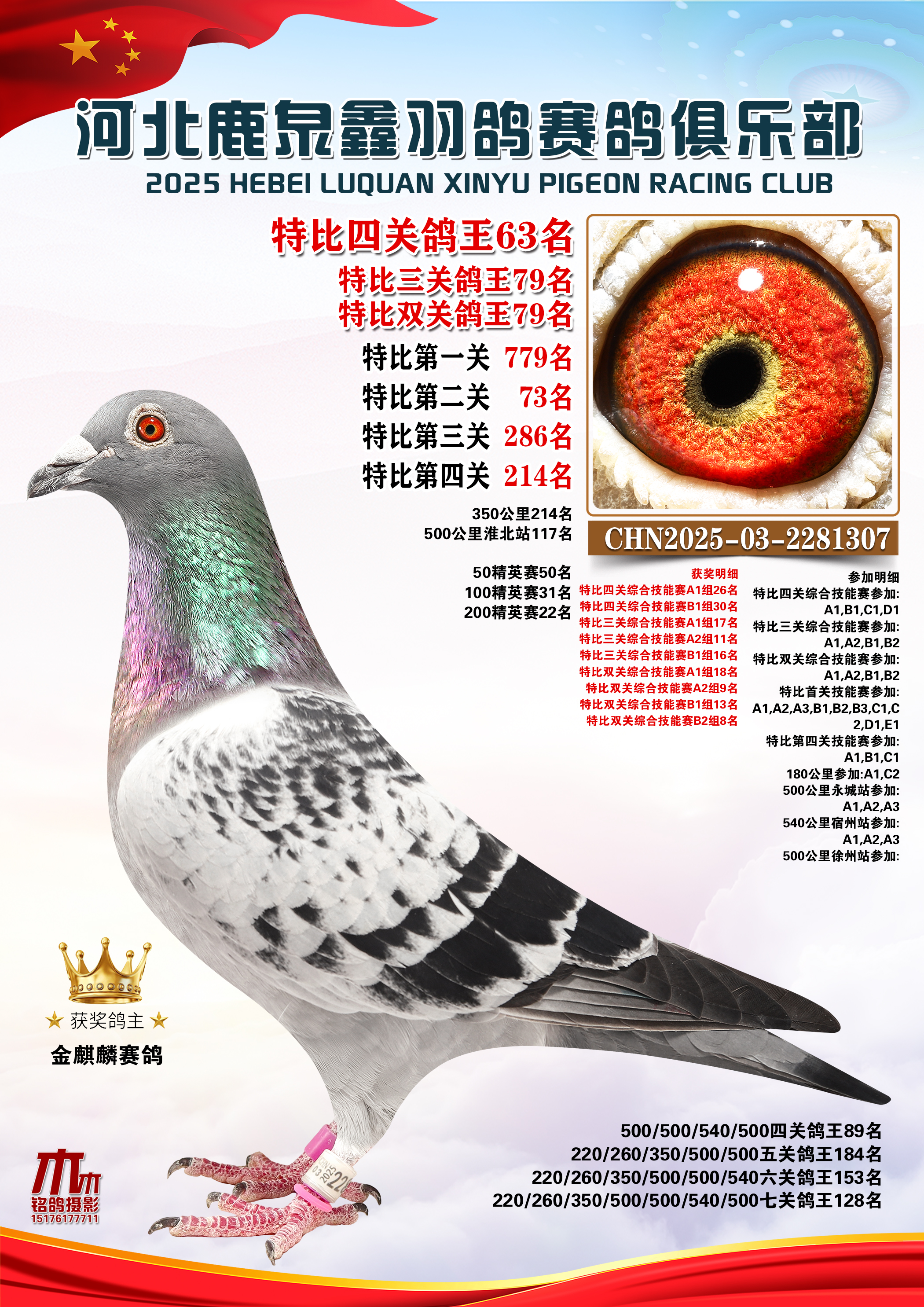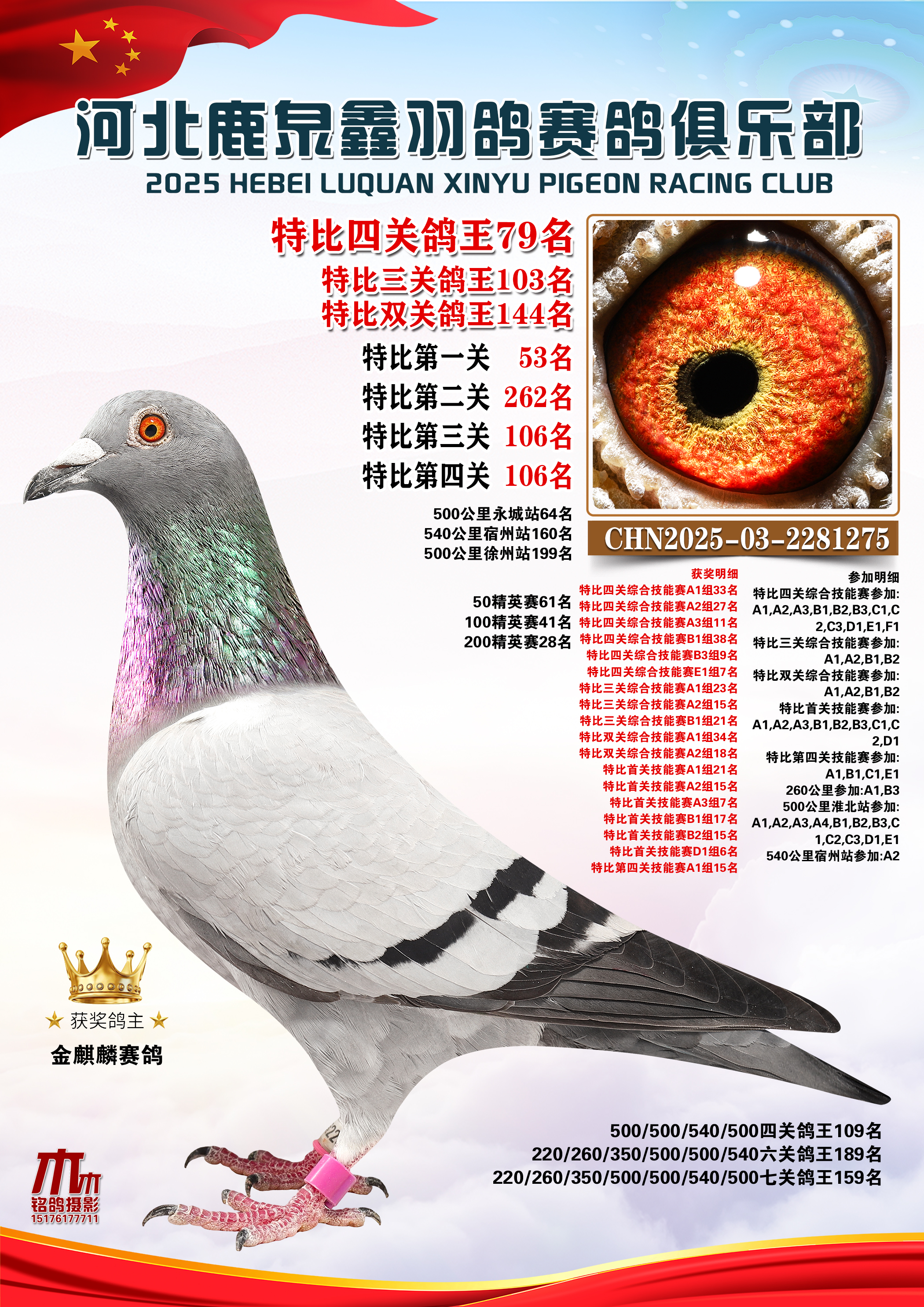 • 25秋河北鹿泉鑫羽鸽俱乐部特比鸽王151-200名 (2025/12/1 8:13:09)